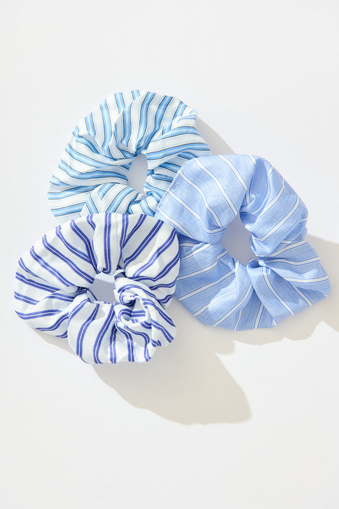 Laurel 3 Pack Scrunchie In Multi Blue Stripe