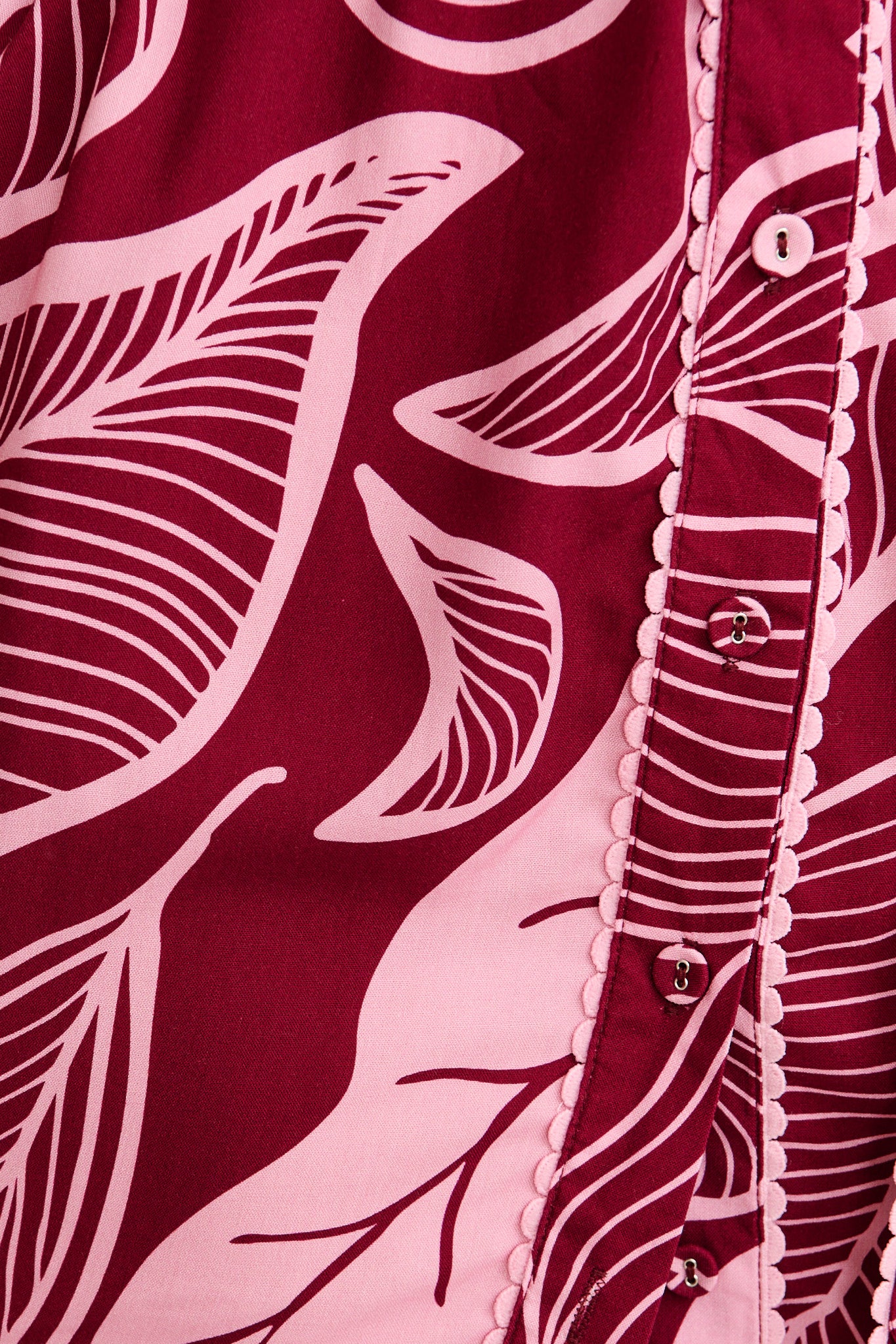 - Plum and pink leaf print (placement may vary)